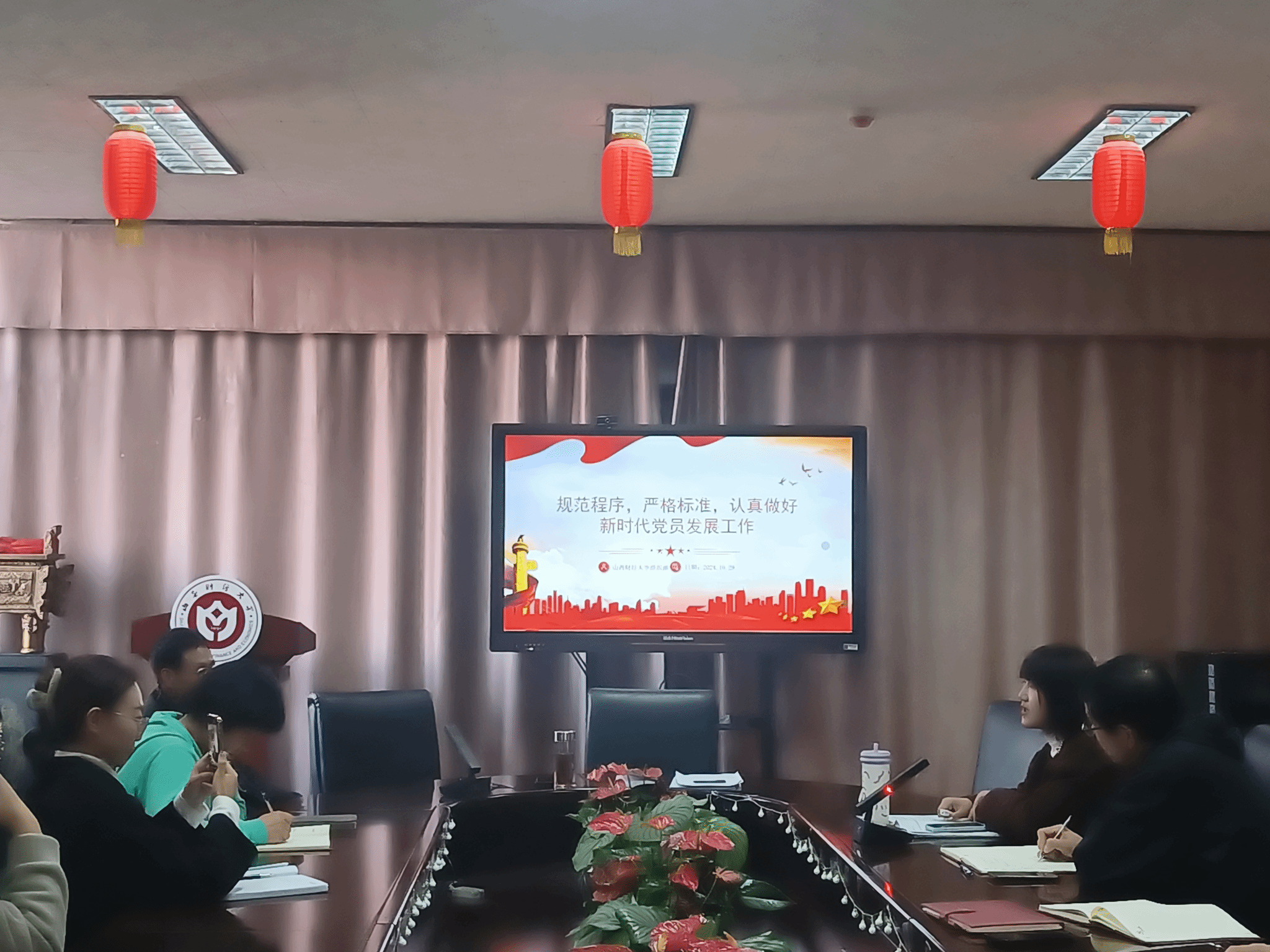 随后,组织员洪茜对《规范程序,严格标准,认真做好新时代党员发展工作》做详细解读,深入阐释了党员发展工作的深远意义、核心原则及应注意的事项。她对党员发展流程、党员组织关系转接、党员发展材料的规范填写等方面进行了详尽的说明,并着重强调了发展党员工作中的政治标准,以确保新发展的党员质量,维护党的先进性和纯洁性。